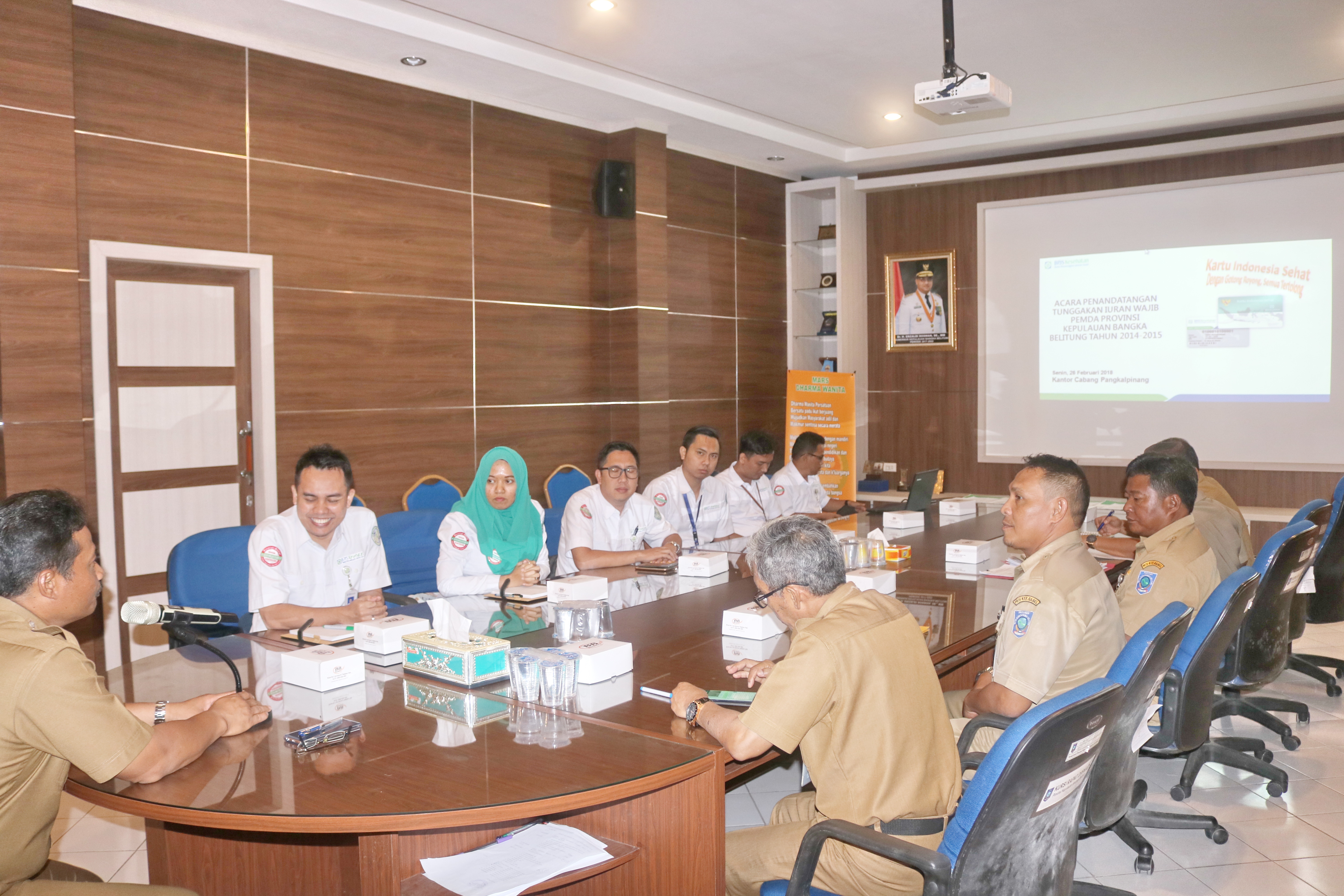 Diakhir pertemuan dilakukan penandatangan Berita Acara Penandatangan Tunggakan Iuran Wajib Pemda Provinsi Kepulauan Bangka Belitung Tahun 2014 – 2015 diantara kedua belah pihak.