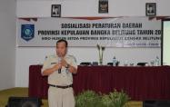 Pangkalpinang-- Gubernur Pemerintah Provinsi Kepulauan Bangka Belitung yang diwakili oleh Asisten Administrasi Umum K.A Tajuddin, SH pada pidato pembukaan acara Sosialisasi Peraturan Menteri Dalam...