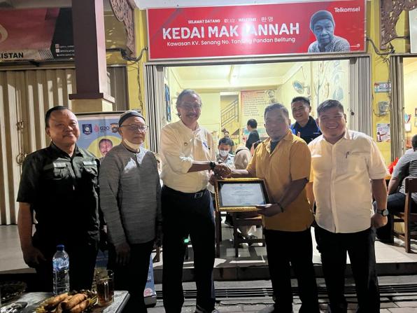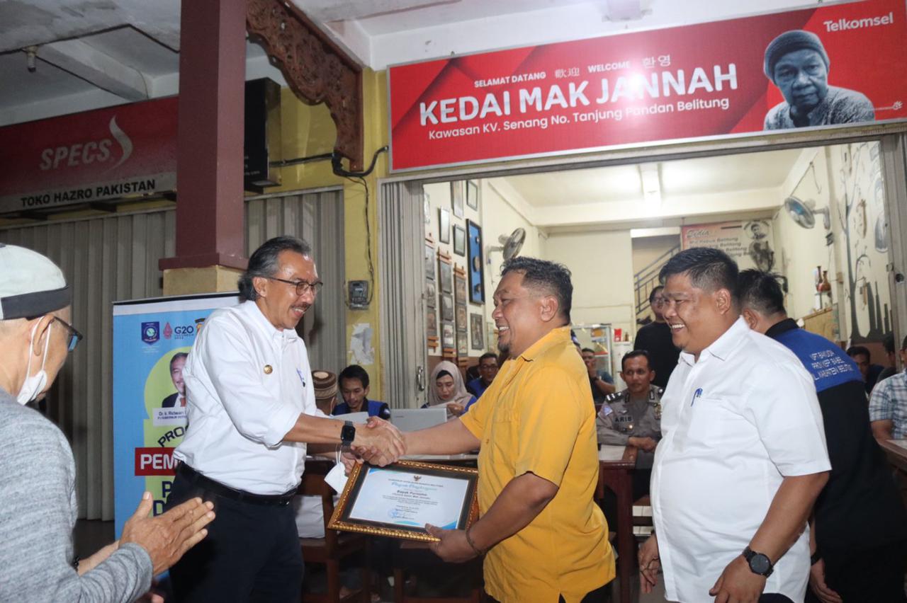 Atas dukungan masyarakat dalam menyukseskan program pemerintah, di sela-sela kesibukannya Penjabat (Pj) Gubernur Kep. Babel Ridwan Djamaluddin menyempatkan untuk menemui pemilik Kedai Mak Jannah, Purnomo untuk memberikan piagam penghargaan atas partisipasi dan kontribusi membantu dan mensukseskan kegiatan Samsat Setempoh UPT Bakuda Kep. Babel wilayah Belitung.