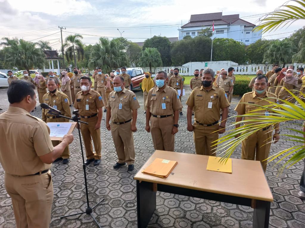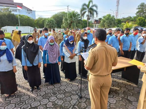 “ selama ini Pejabat Eselon III dan PHL sudah baik dalam melaksanakan tugas dan fungsinya. Hanya saja perlu ditingkatkan kembali kinerjanya,” saran Fery saat penandatanganan Perjanjian Kinerja, Pejabat Eselon III dan PHL Bakuda secara simbolis usai Apel Pagi, Rabu (14/02/2022).