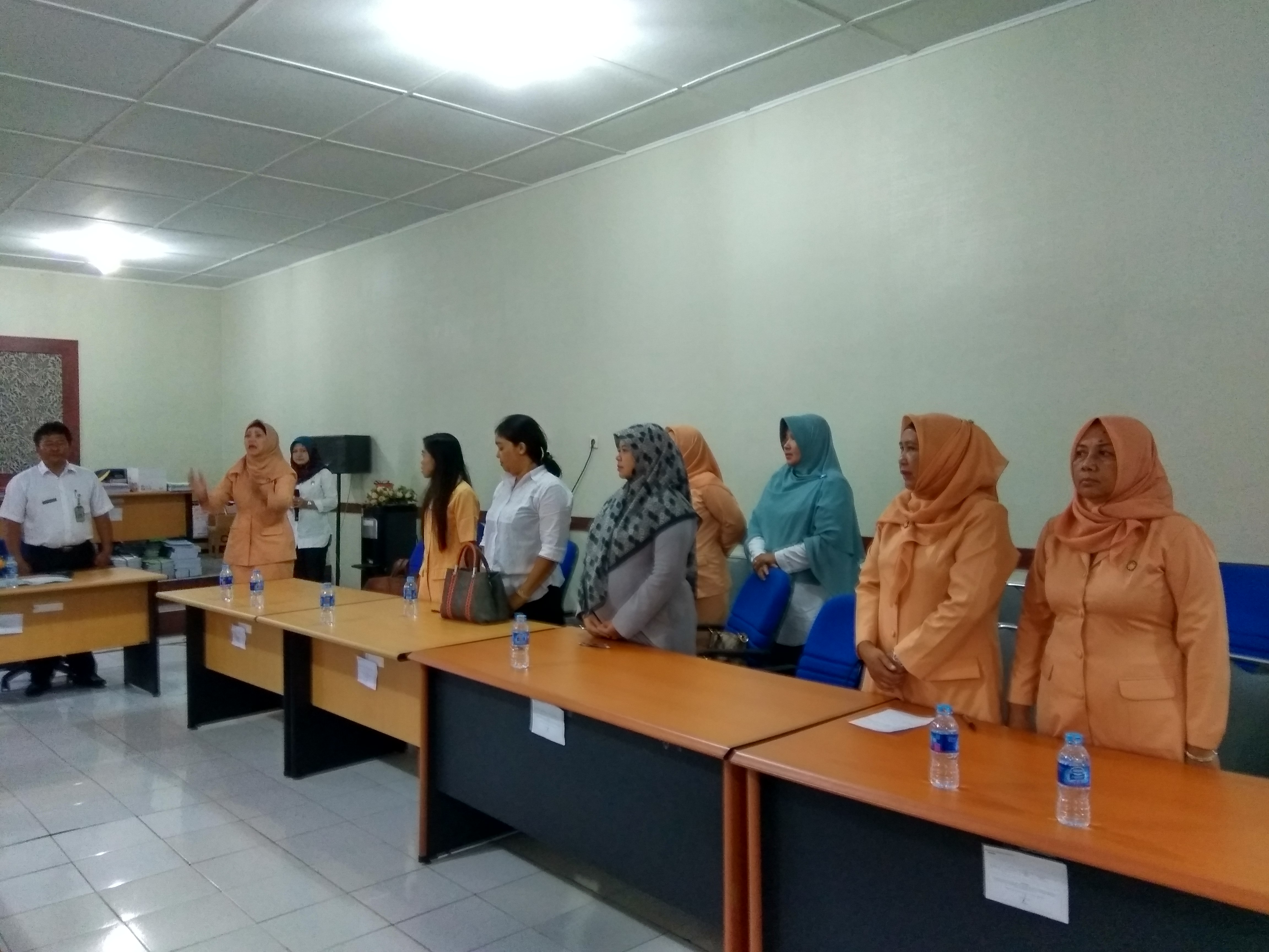Demikian sebait lagu Mars Dharma Wanita Persatuan yang berkumandang pada acara kunjungan Dharma Wanita Persatuan Provinsi Kepulauan Bangka Belitung ke Dharma Wanita Persatuan Dinas Pendapatan Pengelolaan Keuangan dan Asset Daerah Provinsi Kepulauan Bangka Belitung di ruang rapat Dinas Pendapatan Pengelolaan Keuangan dan Asset Daerah Provinsi Kepulauan Bangka Belitung (20/04/2016). Para anggota DWP dengan seragam cokelat keoranyean berdiri dan bersemangat menyanyikan mars yang menyuarakan visi dan misi organisasi Dharma Wanita Persatuan.
