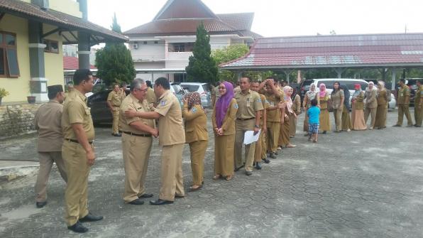 Di penghujung apel, satu persatu pegawai BAKUDA bersalaman dengan Kepala DPPKAD Provinsi Kepulauan Bangka Belitung dan Kepala Badan Keuangan Daerah Provinsi Kepulauan Bangka Belitung. (ACH)