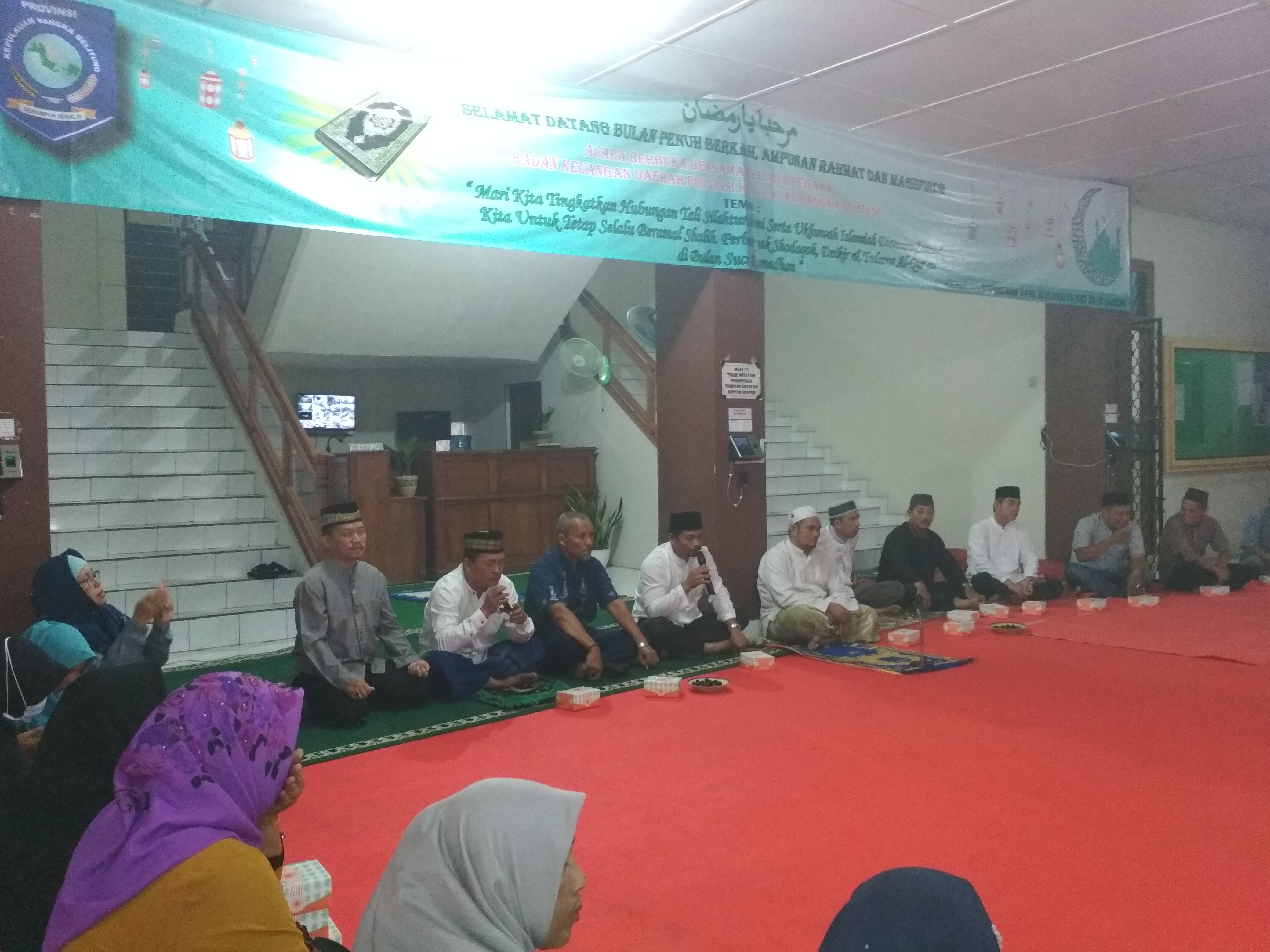 Pangkalpinang- Badan Keuangan Daerah Provinsi Kepulauan Bangka Belitung menyelenggarakan berbuka bersama di ruang lantai satu , berbuka bersama ini diikuti oleh seluruh pegawai dilingkungan bakuda dan diisi oleh tausiah agama yang disampaikan oleh ustad Jamaluddin. Acara ini dilaksanakan dalam rangka agenda tahunan bakuda setiap tahun. Tausiah yang disampaikan bertema berbakti kepada orang tua.